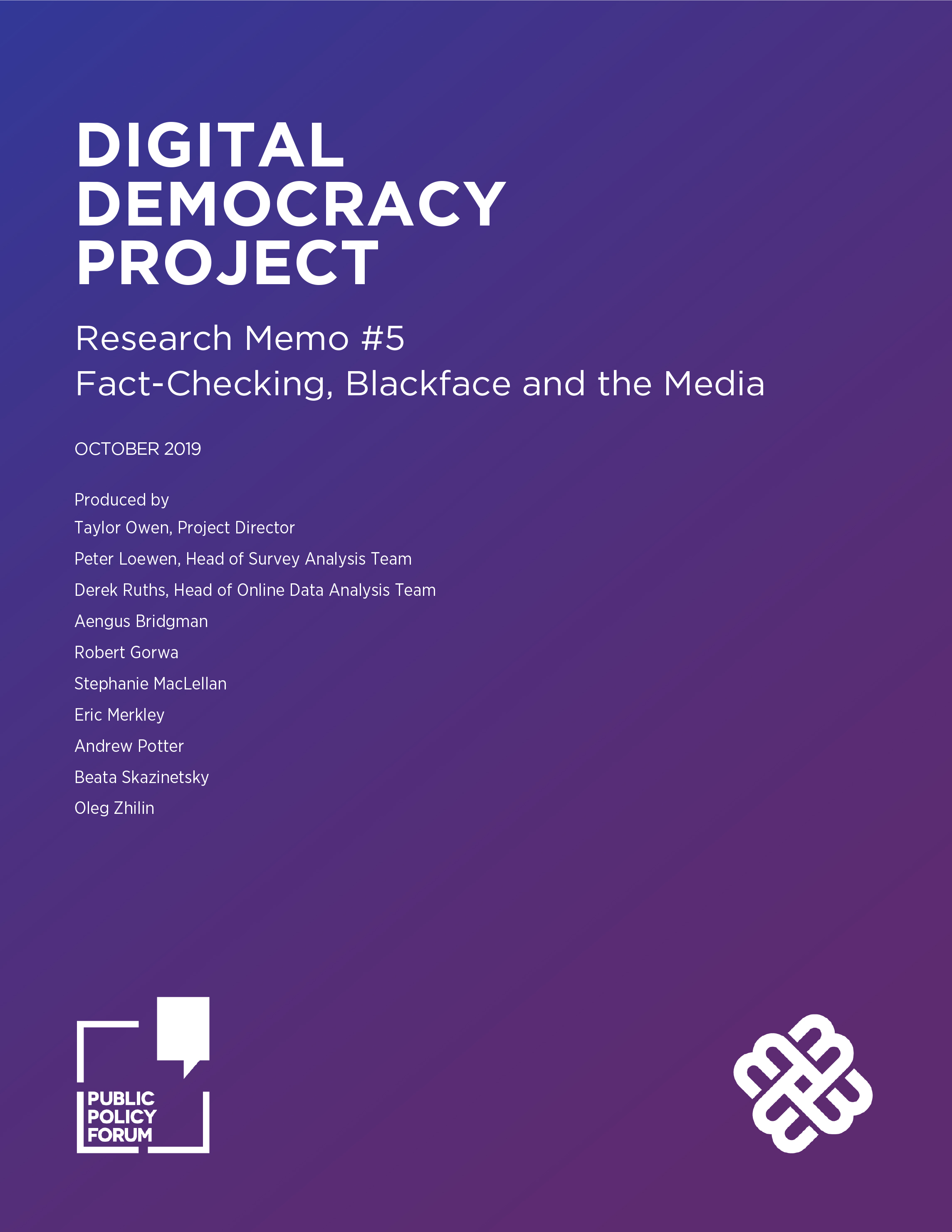 The core team of the MEO worked in a partnership with the Public Policy Forum on the Digital Democracy Project during the 2019 Canadian Federal Election.